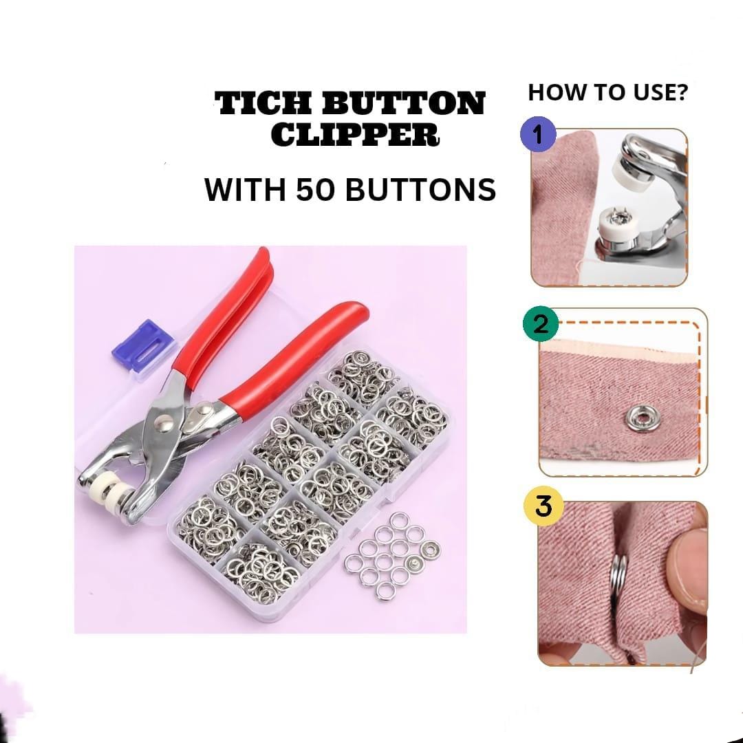 Order your Tich Button Machine with 50 buttons per pack today for quick, reliable, and professional button fastening!